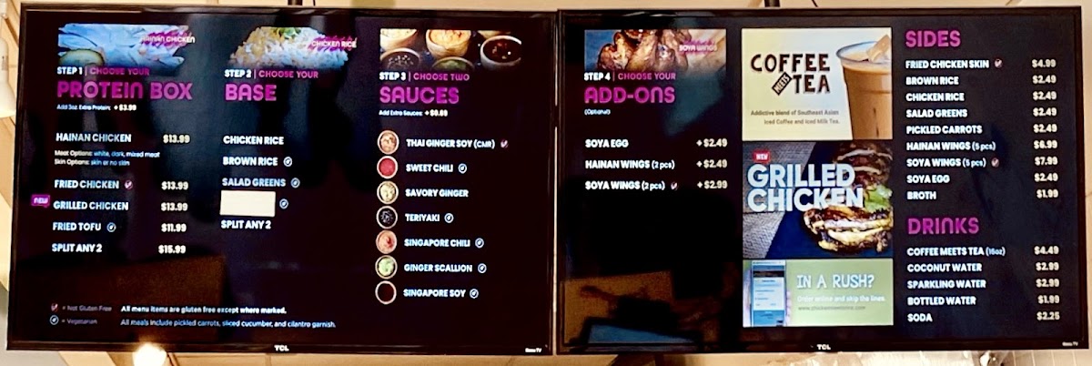 Here, you have the freedom to craft a meal that resonates with your personal taste. Their Build Your Own options invite you to explore flavors, featuring a tantalizing selection such as the Hainan Chicken Box and the crispy Fried Chicken Box, both priced at US$16.49. You can also opt for the Grilled Chicken Box, which is a great gluten-free choice, or the "Split Any 2" option for just US$17.99, allowing you to indulge in both grilled and fried chicken. Order a side of their seasoned Chicken Rice or try their newly introduced House Salad for a refreshing crunch, as you sip on a delightful Lychee Peach Lemonade or choose from other exciting beverages.